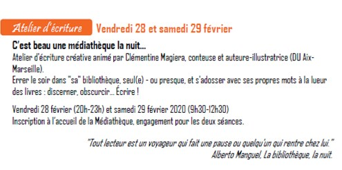 « Les ateliers d’écriture créative de Clémentine. Cela ressemble au titre d’un livre … On est embarqué, une cheffe d’orchestre à crinière rouge donne le tempo. Chacun est libre de sa propre création. Pourtant il est émouvant d’entendre chez l’autre l’écho de l’écriture de l’un. Une alchimie s’opère dans la bienveillance et la bonne humeur. Alors, pourquoi écrit-on ? (…) L’expérience de ces ateliers, l’expérience partagée avec d’autres, ouvrent des voies insoupçonnées, pour oser dire sans impudeur ce qui sommeille en nous sous un édredon d’ignorance ! » Philippe.